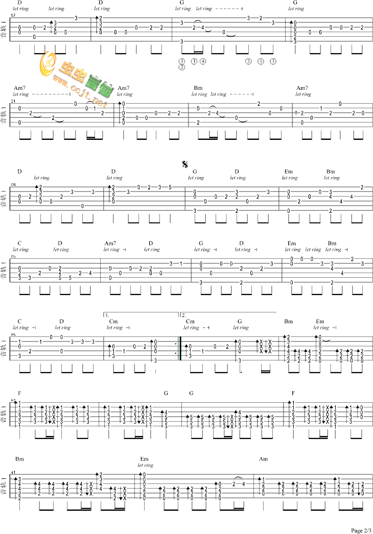 - [歌谱,吉他谱] 一生有你 独奏 zhanglei7781版