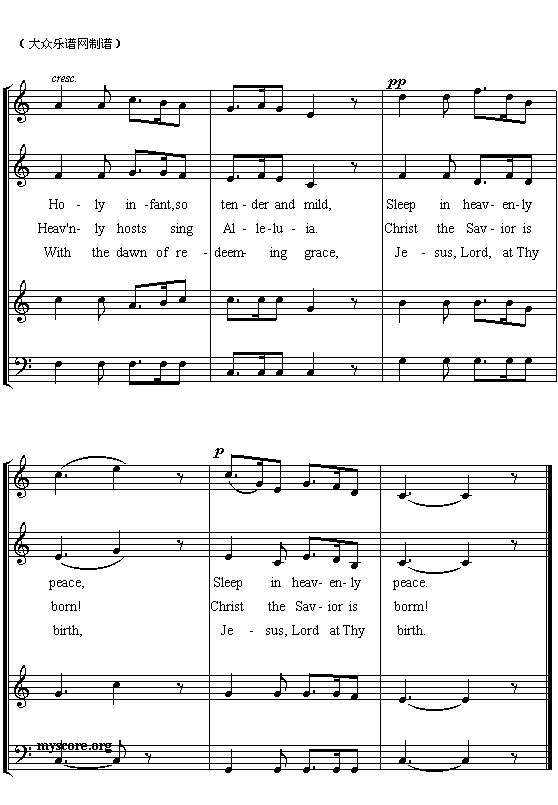 > Holy Night 平安夜英文歌曲 混声四部合唱