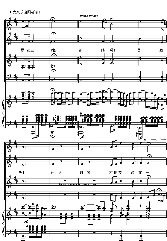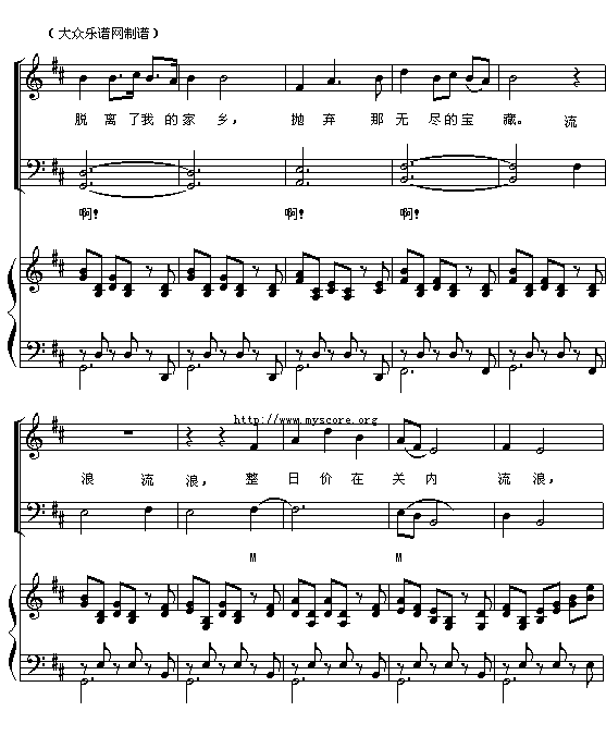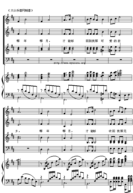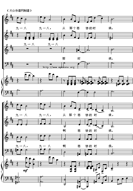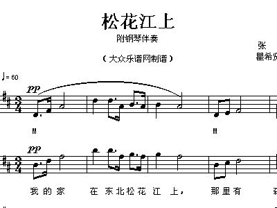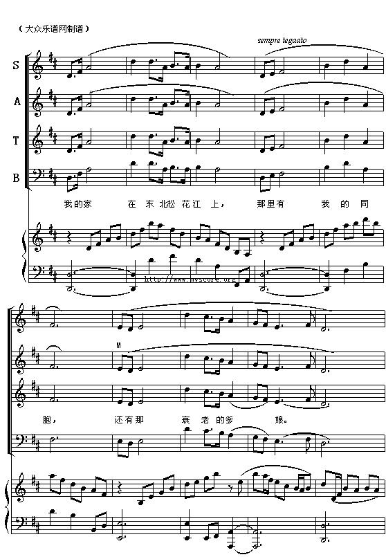 > 松花江上 混声四部合唱 附钢琴伴奏
