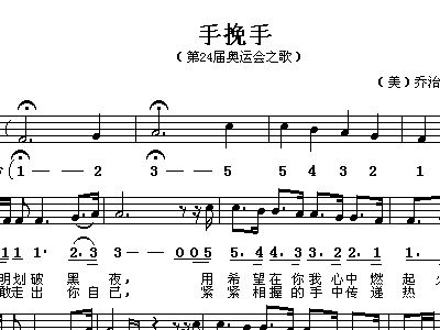 第24届汉城奥运会主题歌 手拉手 单声部 版