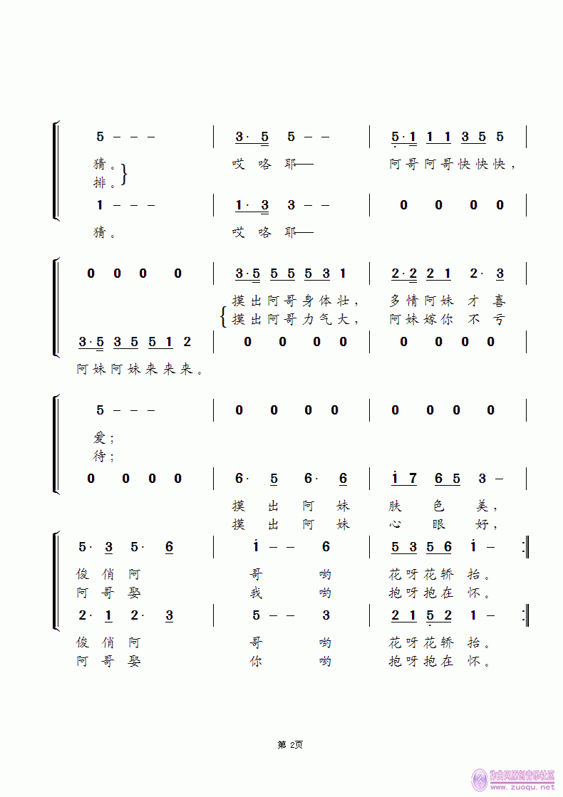 - [歌谱] 阿瓦山里摸你黑 男女对唱
