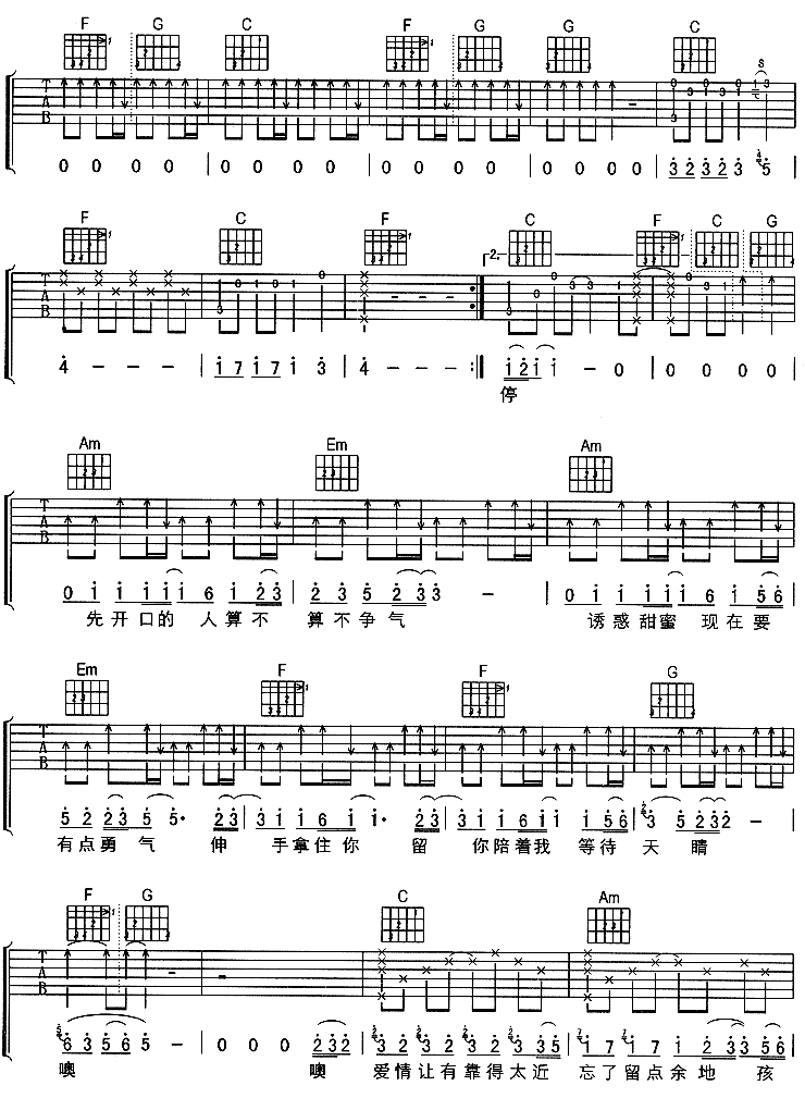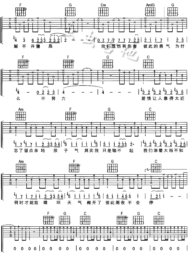 - [歌谱,吉他谱] 坏天气 孙燕姿