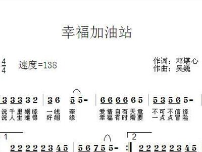 - [歌谱] 幸福加油站 吴巍