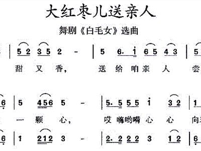 简谱网 > 歌谱 > 大红枣儿送亲人 白毛女 选曲