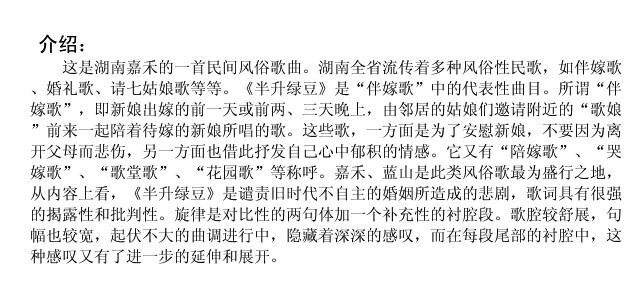 - [歌谱] 半升绿豆 芙蓉镇 插曲