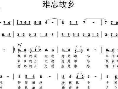 - [歌谱] 难忘故乡