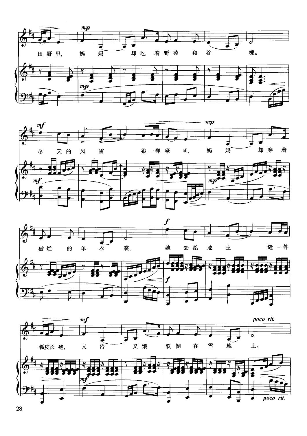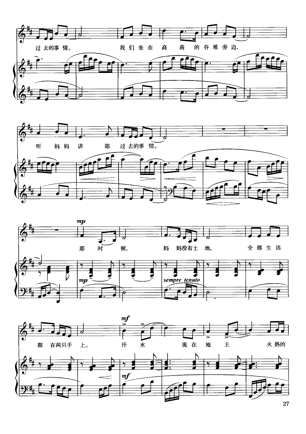 > 听妈妈讲那过去的事情 女中音 钢伴谱