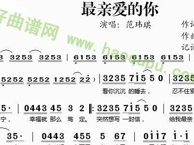 - [二胡谱,歌谱] 最亲爱的你 范玮琪