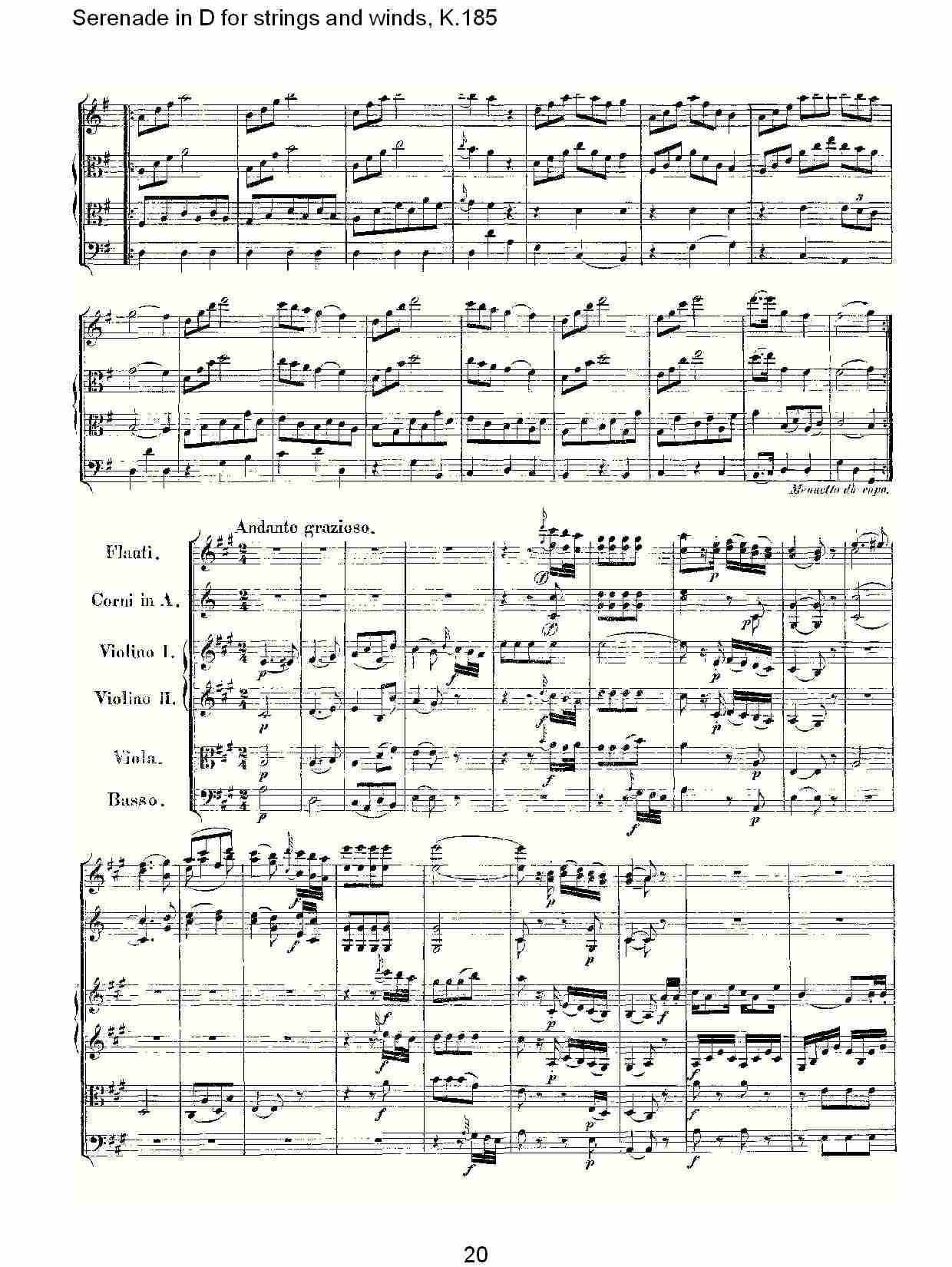 - [歌谱,总谱] D调管弦乐小夜曲 K 185 二