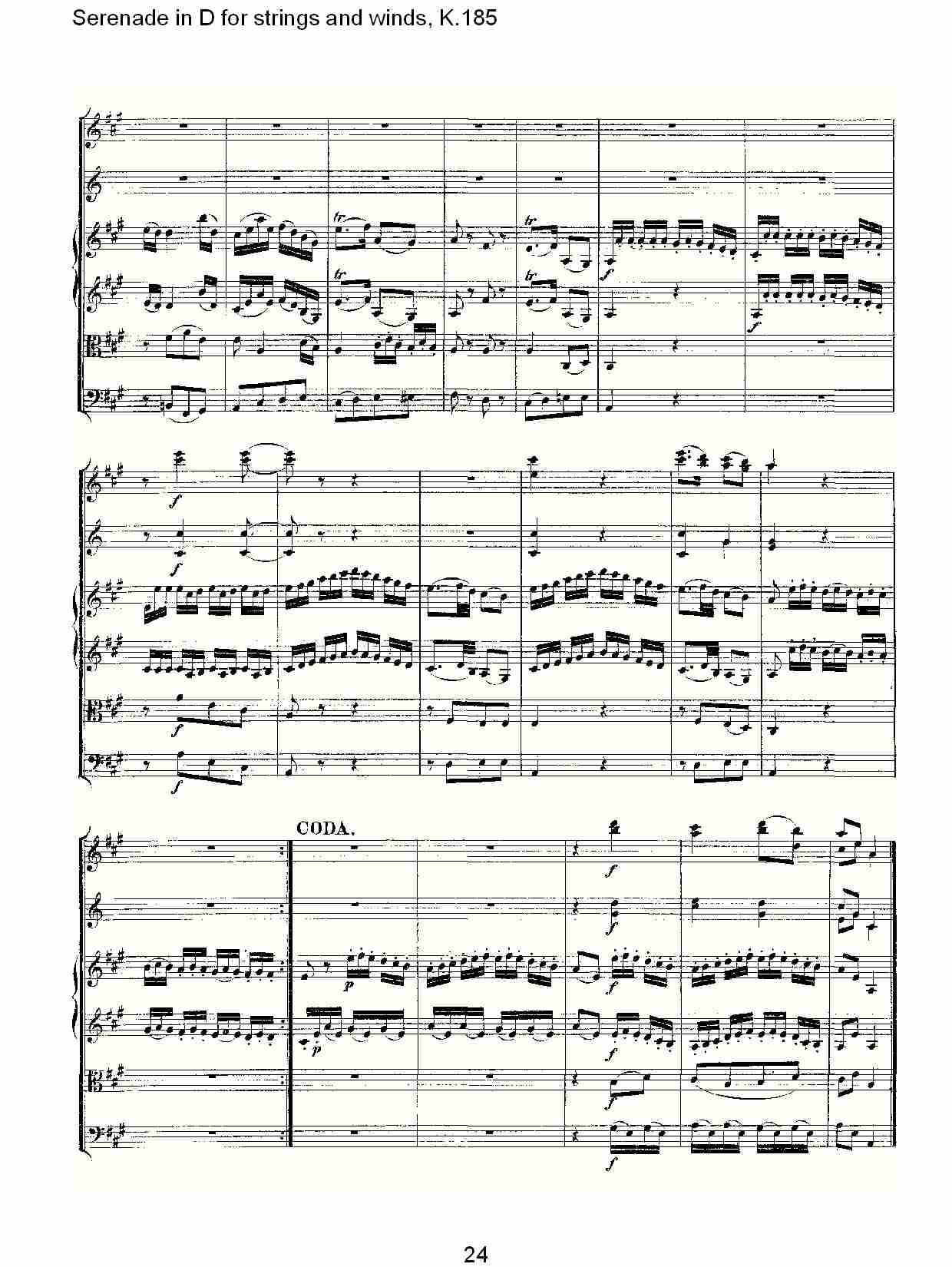 - [歌谱,总谱] D调管弦乐小夜曲 K 185 四
