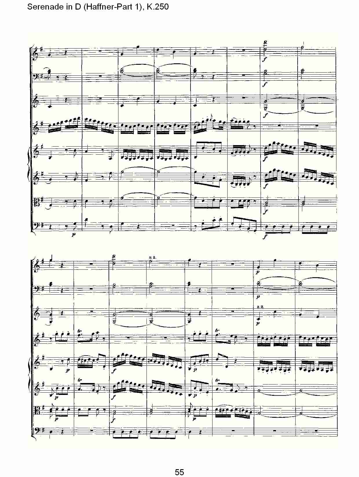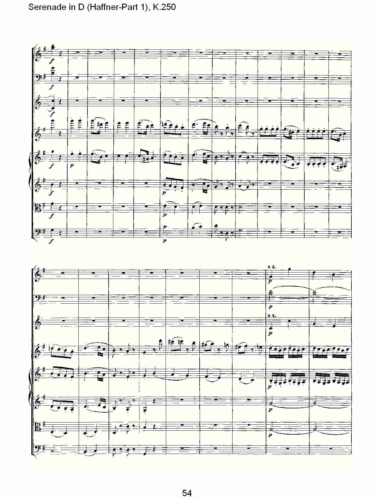 - [歌谱,总谱] D调小夜曲 Haffner 第一部 K 250 八