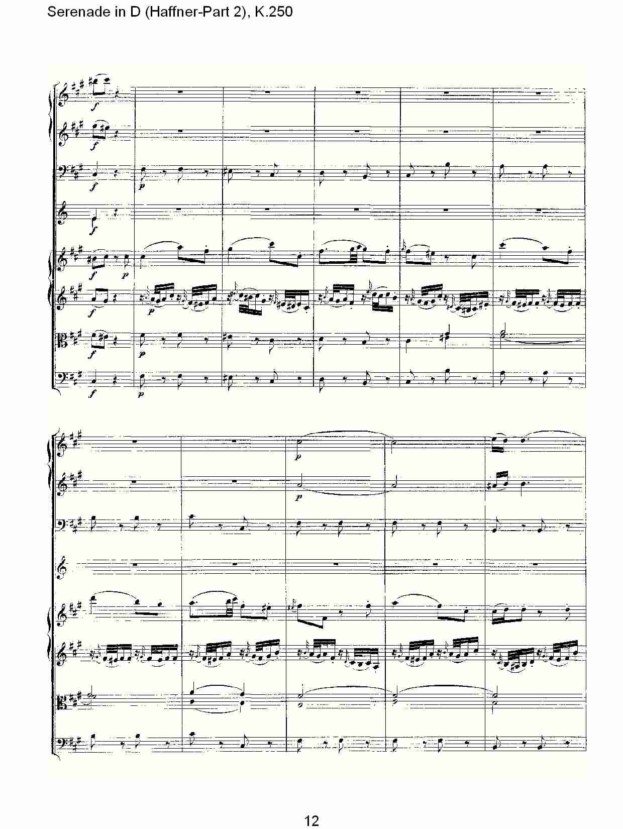 - [歌谱,总谱] D调小夜曲 Haffner 第二部 K 250 八