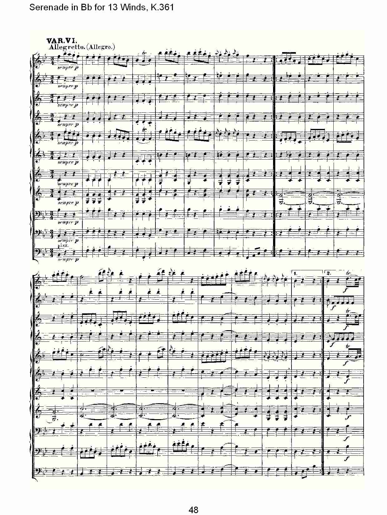 - [歌谱,总谱] Bb调13管乐小夜曲 K 361 六