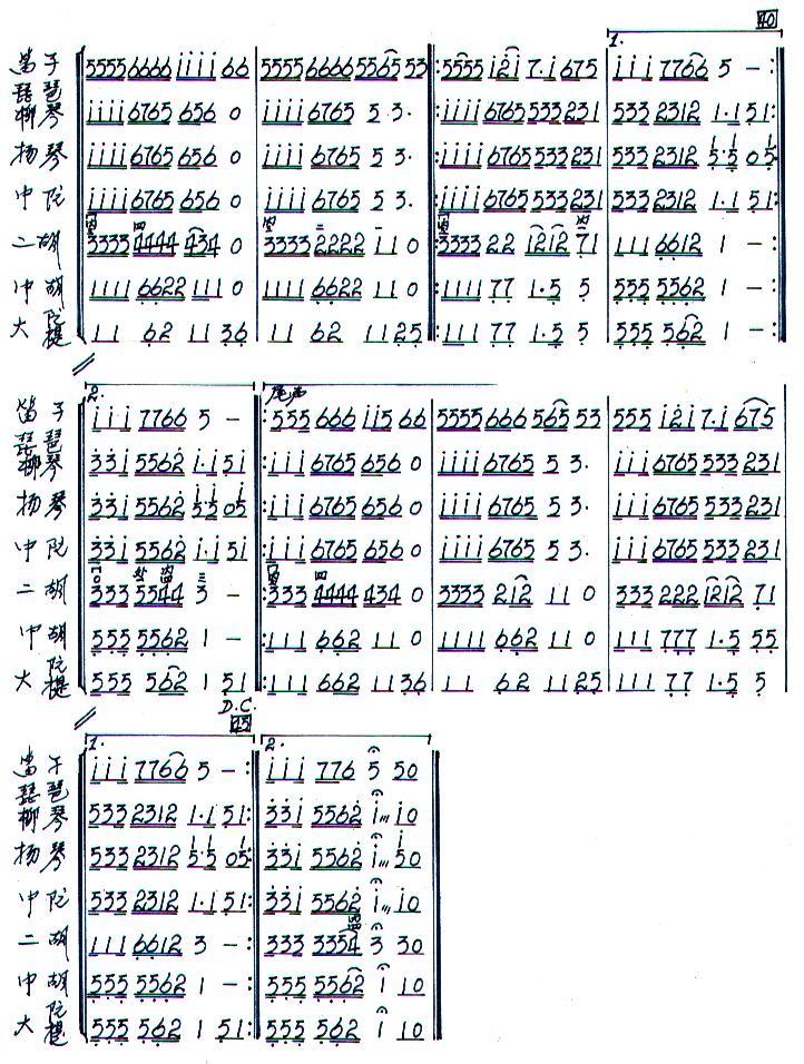 - [分谱,扬琴谱,总谱] 黑力其汗之扬琴