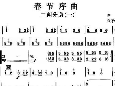 - [二胡谱,分谱,总谱] 春节序曲之二胡