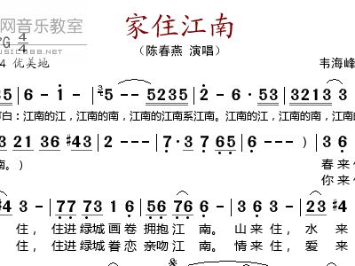 - [歌谱] 家住江南 陈春燕 南宁市江南区区歌
