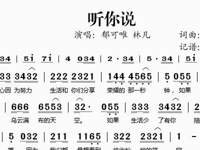 - [歌谱] 听你说 郁可唯 林凡