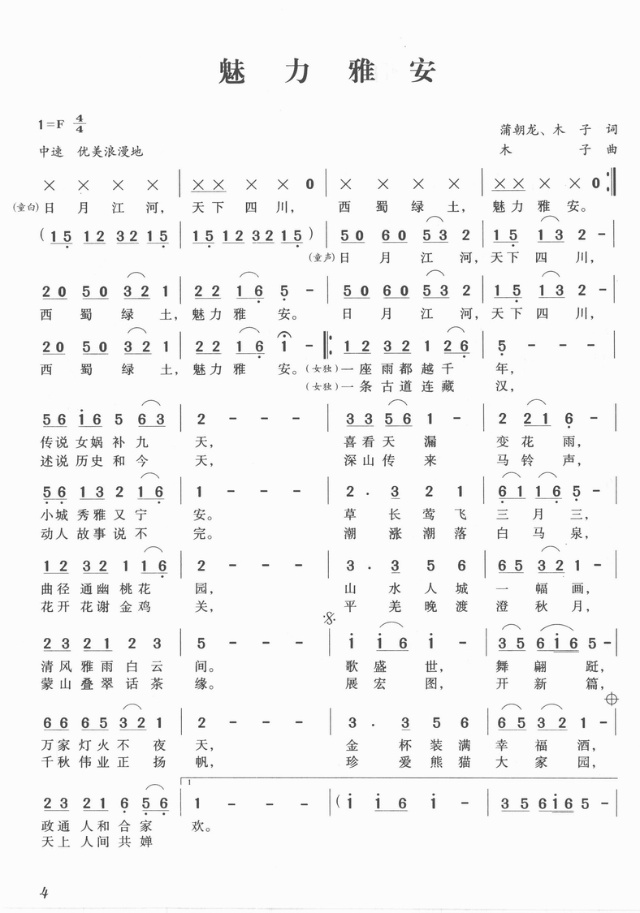 - [歌谱] 魅力雅安