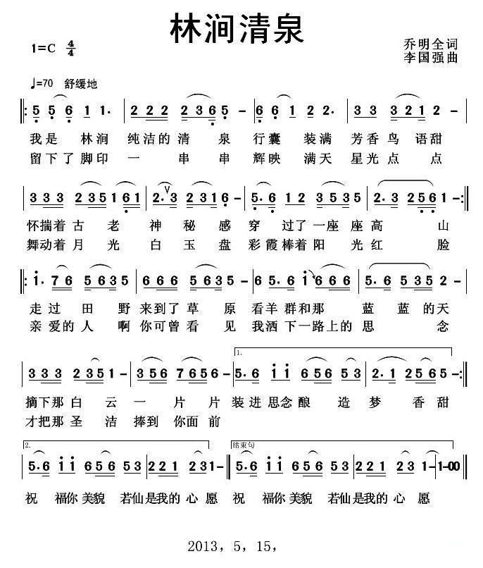 - [歌谱] 林涧清泉 又名 林涧的清泉