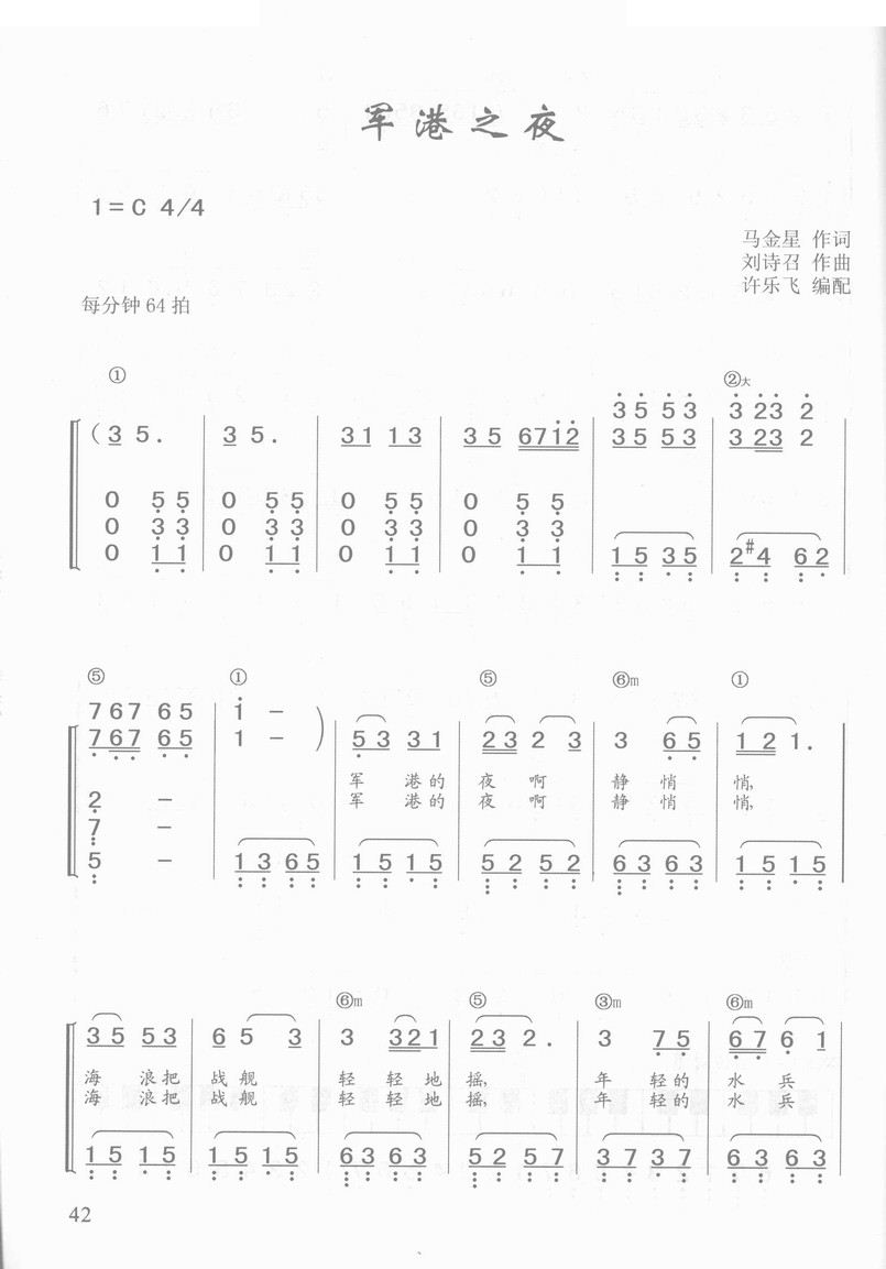 - [电子琴谱,歌谱,吉他谱] 军港之夜 吉他类 流行