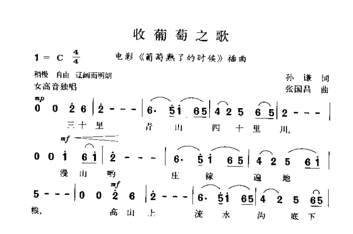 > 收葡萄之歌 电影《葡萄熟了》插曲