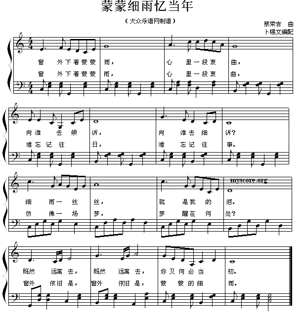 蒙蒙细雨忆当年 弹唱谱
