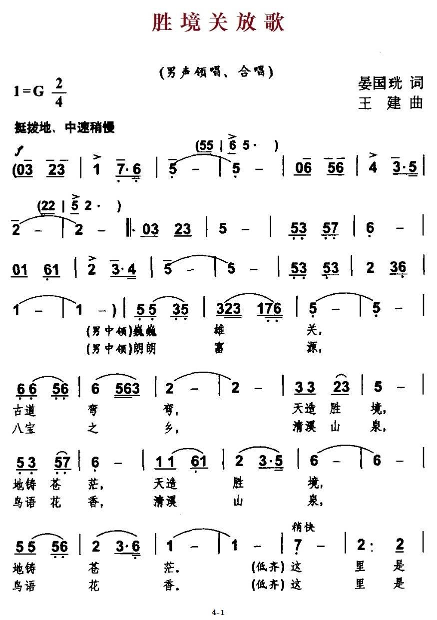 - [歌谱] 胜境关放歌