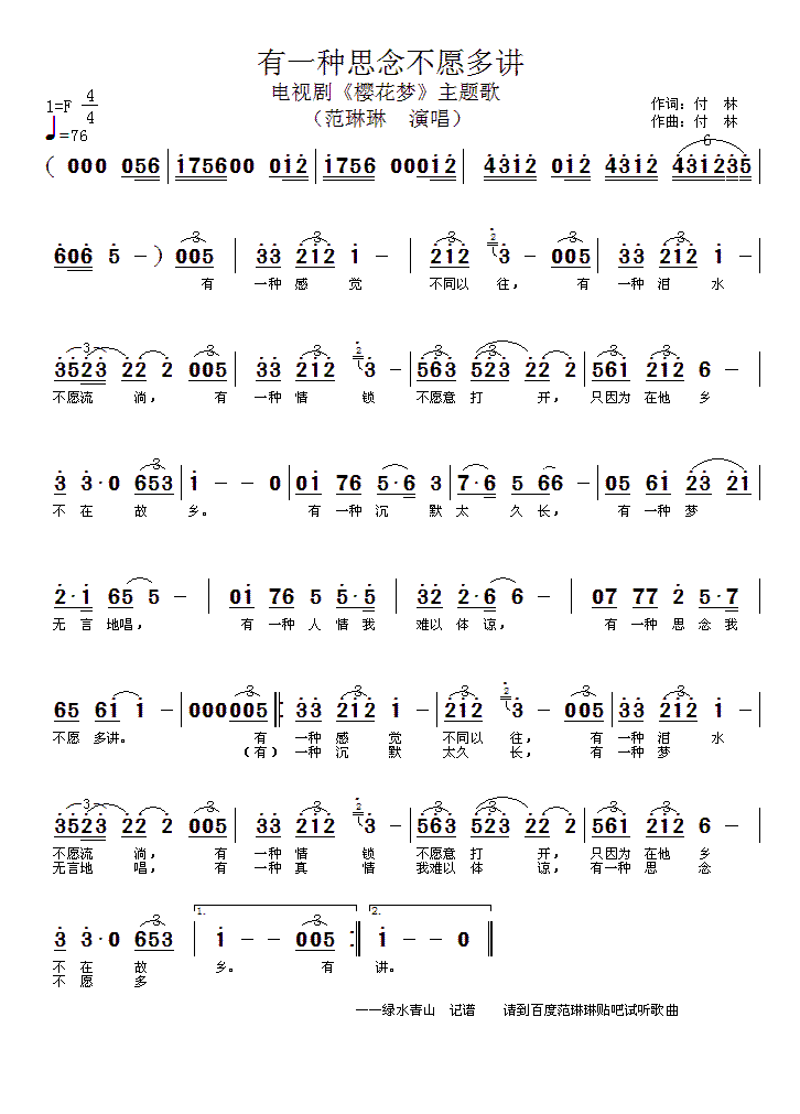 > 有一种思念不愿多讲 电视剧 樱花梦 主题歌