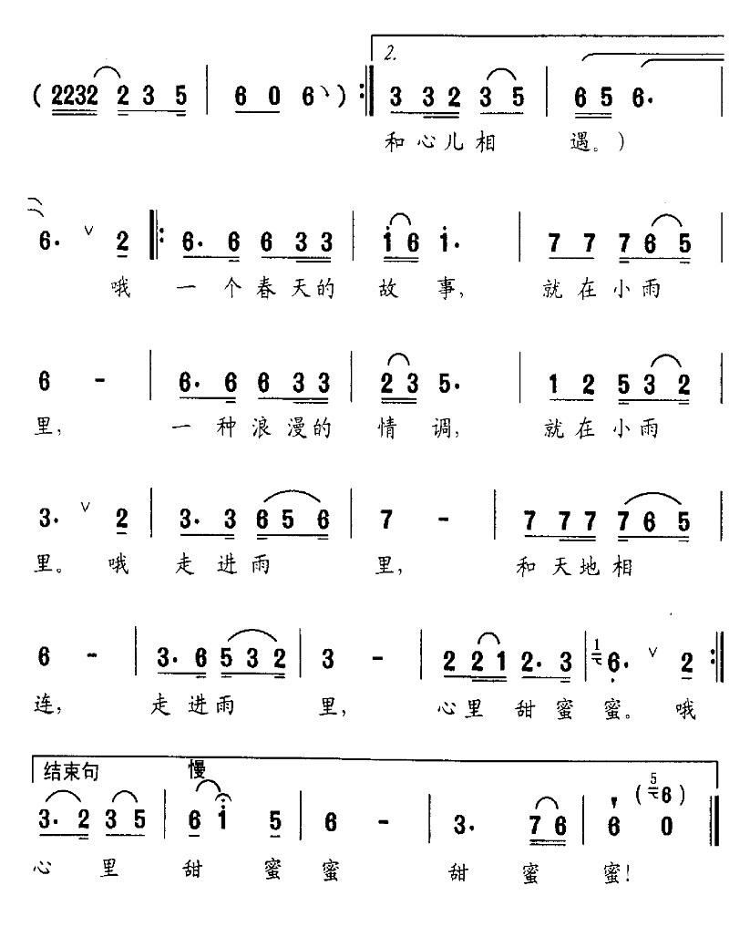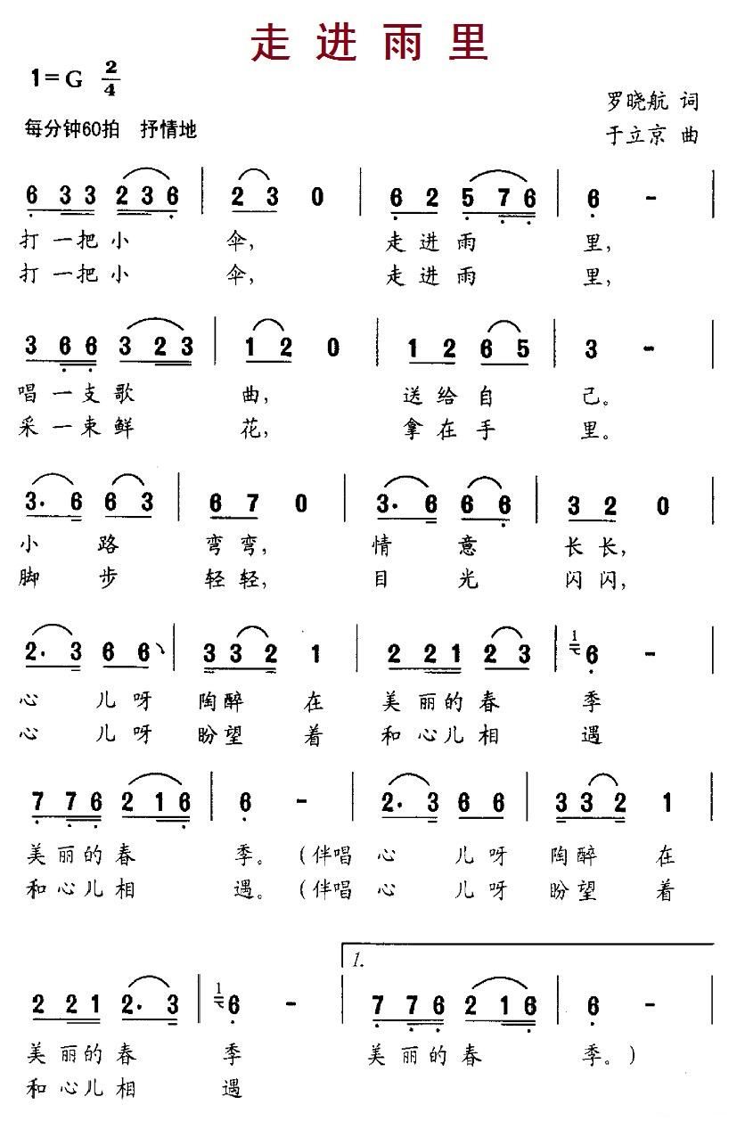 - [歌谱] 走进雨里 童声齐喝或独唱