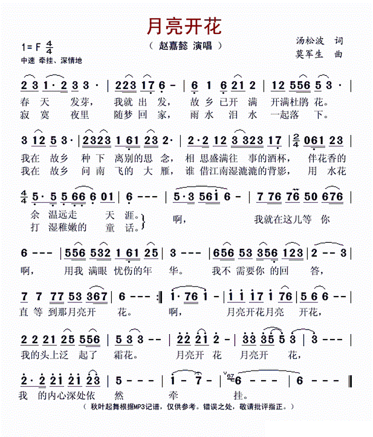 - [歌谱] 月亮开花