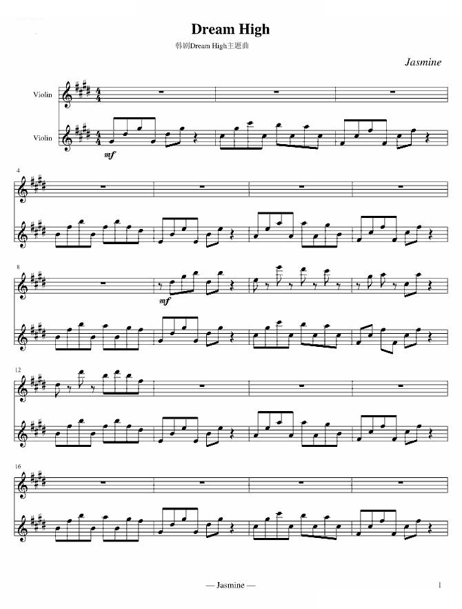 - [小提琴谱] Dream High 双小提琴伴奏谱