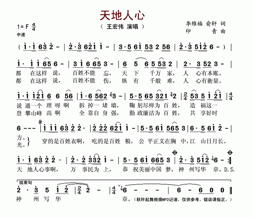 > 天地人心
