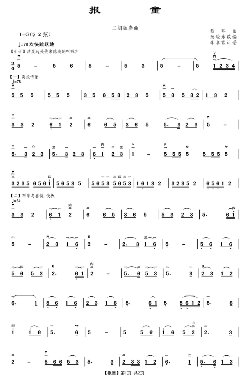 - [胡琴谱] 报童