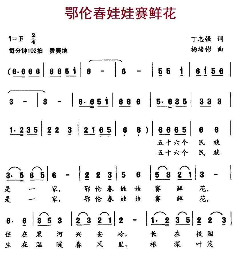 - [歌谱] 鄂伦春娃娃赛鲜花