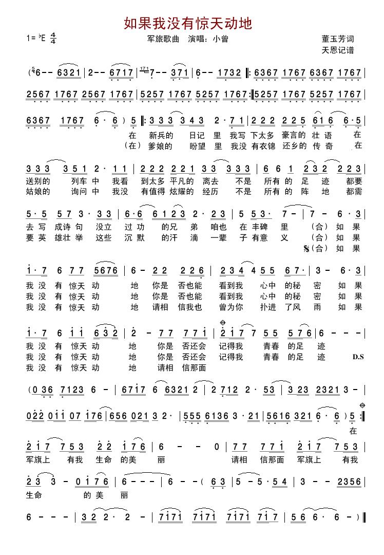 简谱网 > 歌谱 > 如果我没有惊天动地 军旅歌曲