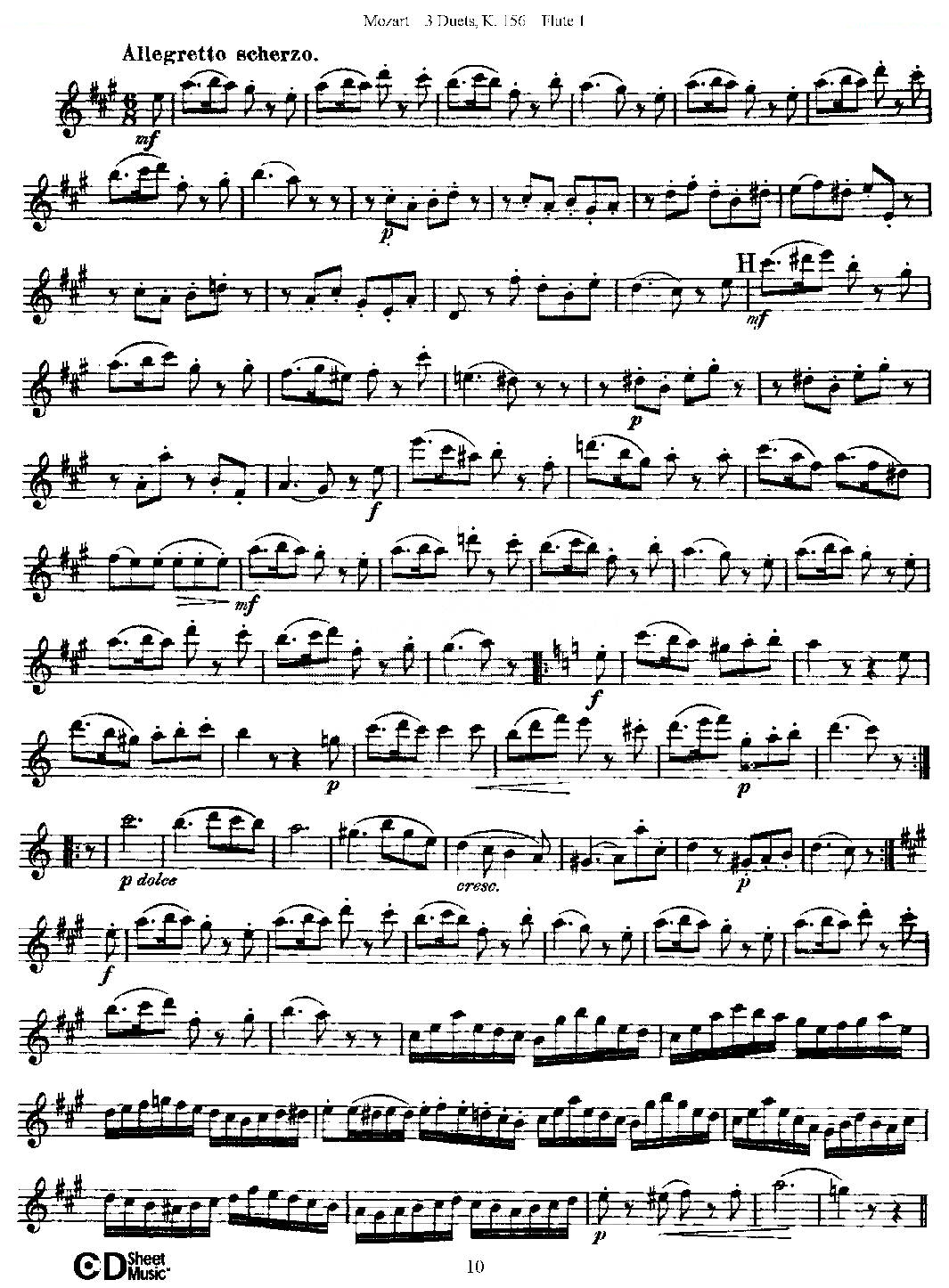 - [笛子谱,长笛谱] 3 Duets K 156 之第一长笛 二重奏三首 K156号 铜管