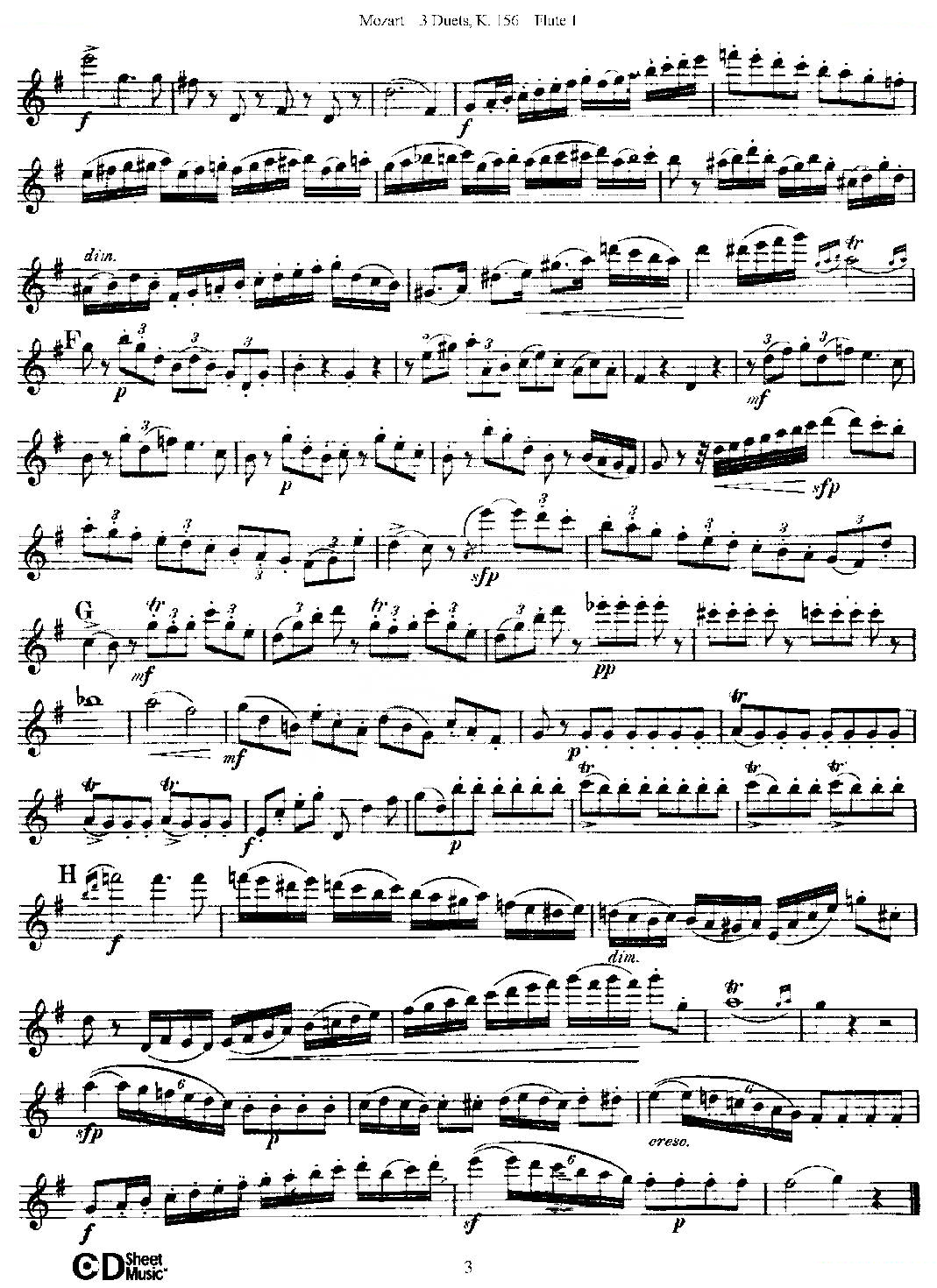 - [笛子谱,长笛谱] 3 Duets K 156 之第一长笛 二重奏三首 K156号