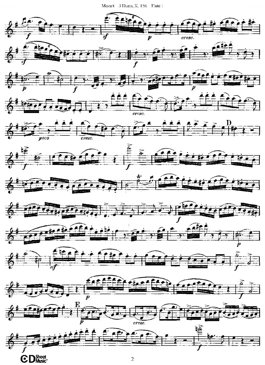 - [笛子谱,长笛谱] 3 Duets K 156 之第二长笛 二重奏三首 K156号 铜管