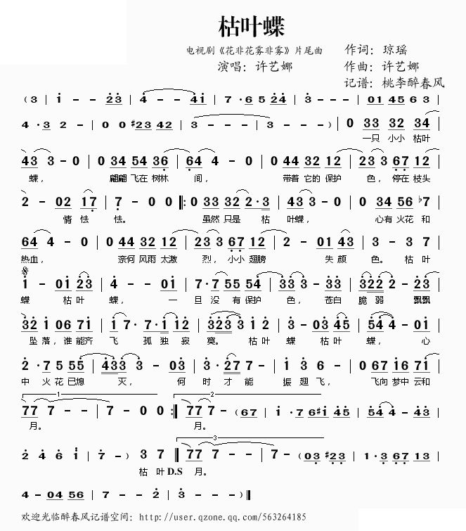 枯叶蝶 花非花雾非雾 片尾曲 许艺娜