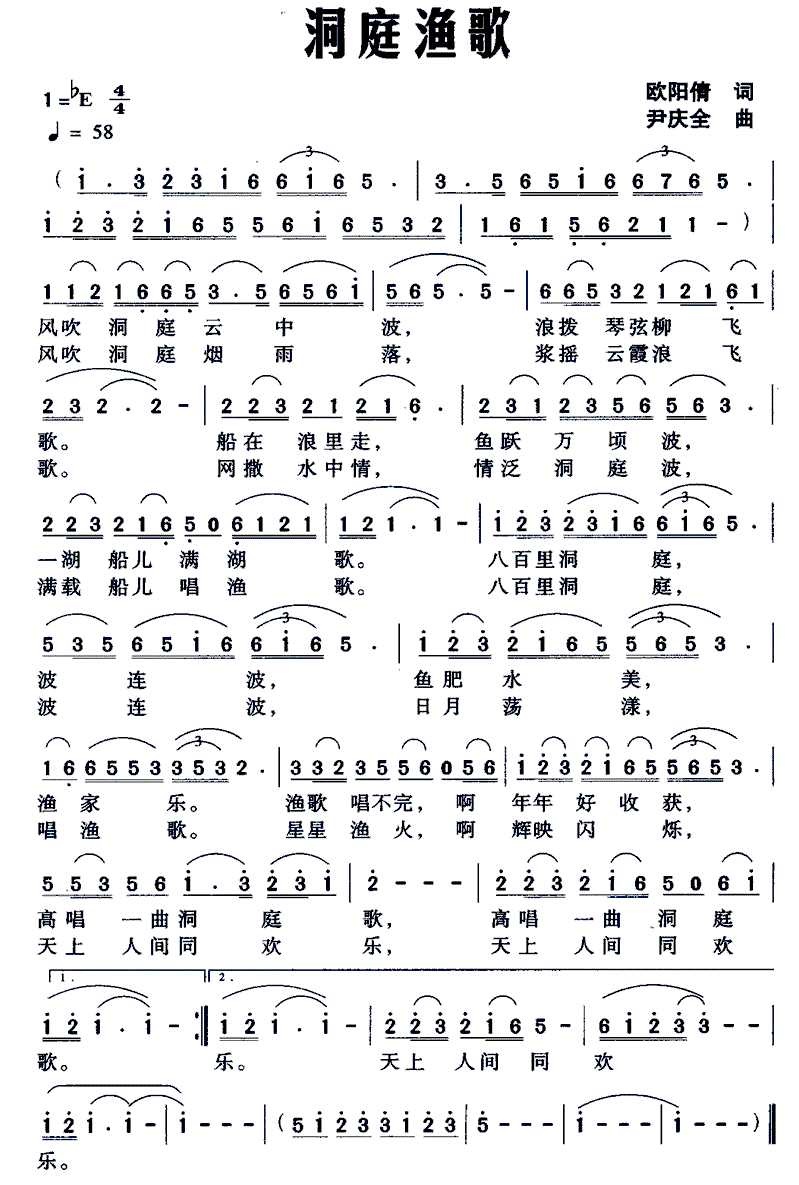 - [歌谱] 爱我洞庭 欧阳倩 陈生铠群作品