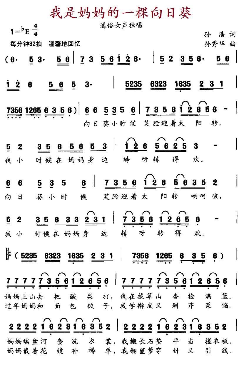 - [钢琴谱,吉他谱] 向日葵 吉他