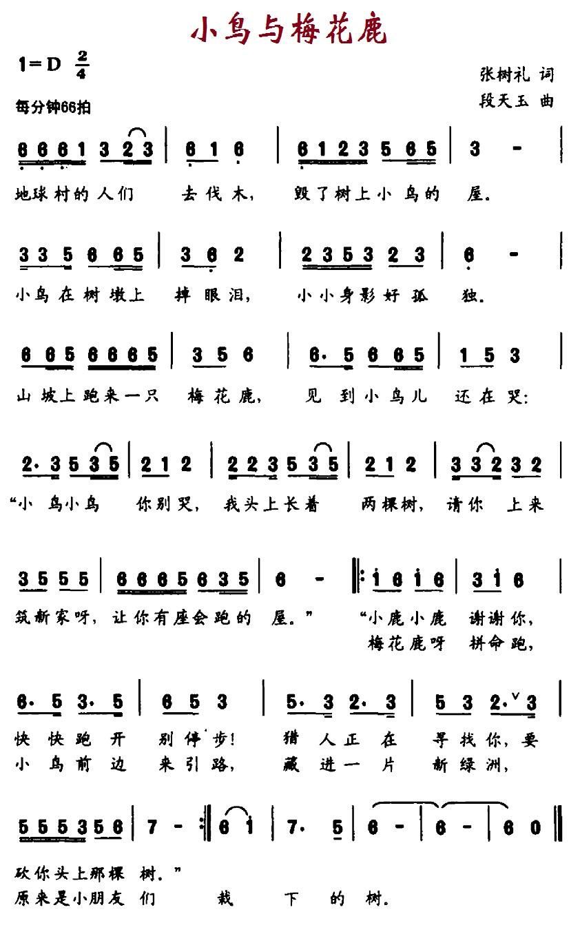 - [歌谱] 小鸟与梅花鹿 童声表演唱
