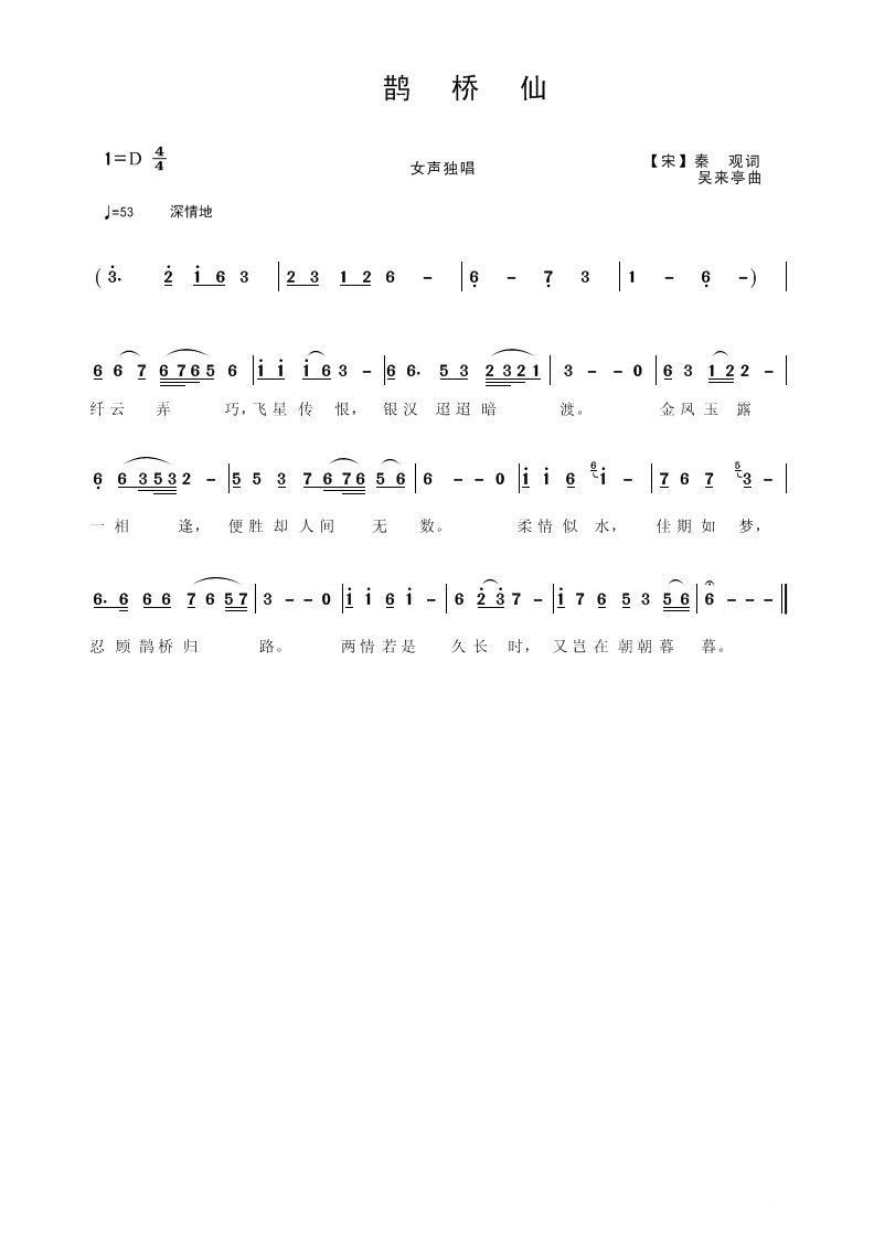 - [歌谱] 鹊桥仙 宋 秦观 诗词