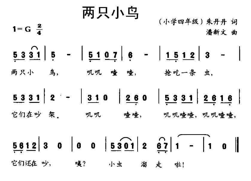 - [歌谱,歌谱] 两只小鸟 美国童谣