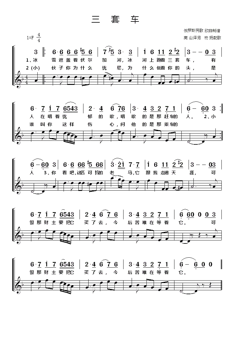 - [电子琴谱,歌谱,手风琴谱] 三套车 俄罗斯民歌