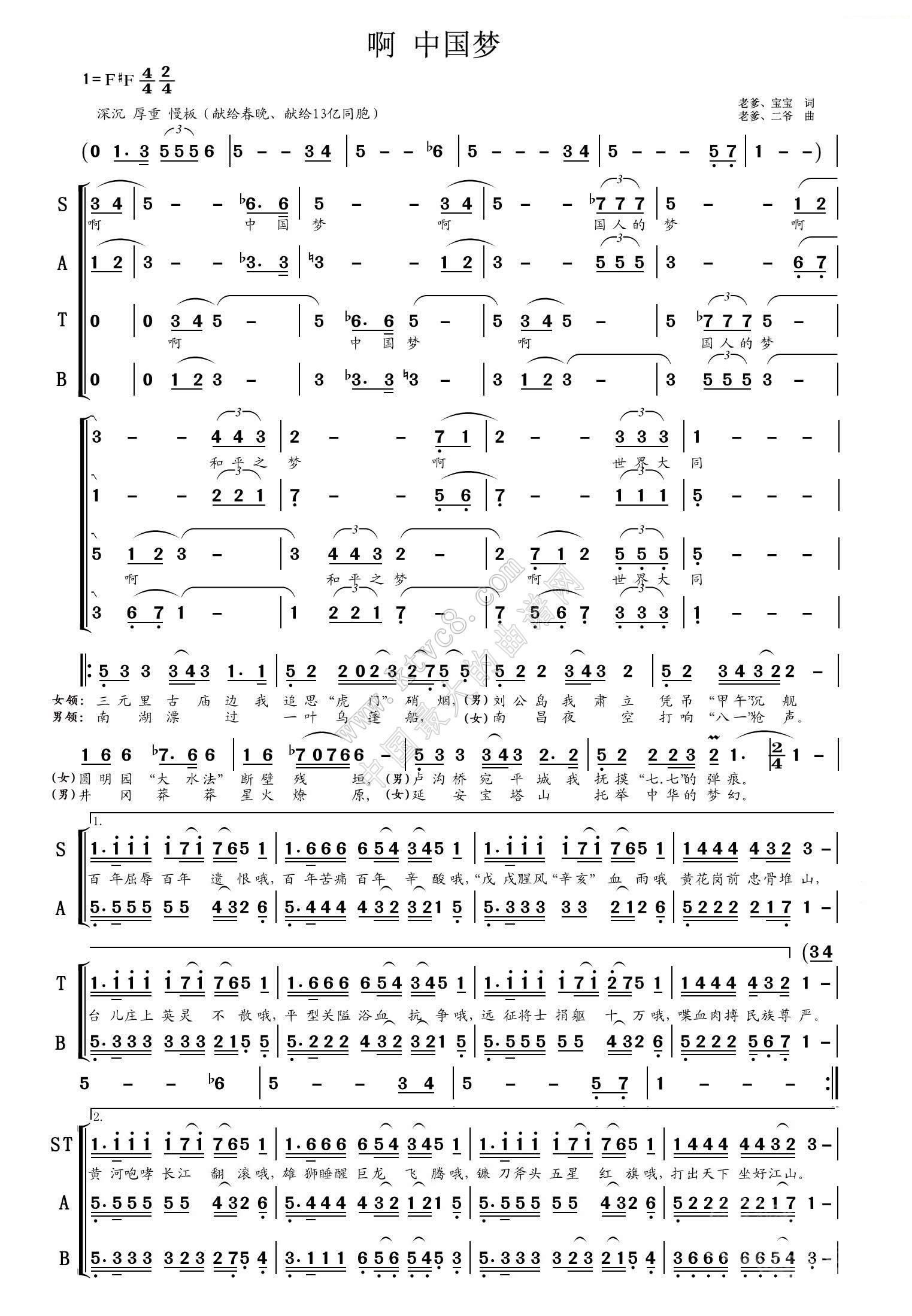 - [歌谱] 啊 中国梦 又名 中国梦