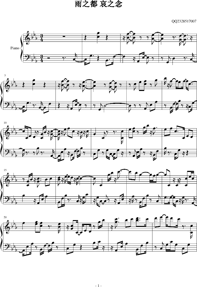 - [钢琴谱,歌谱] 哀と愁 宁次之死