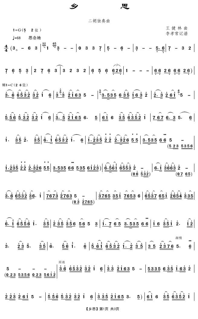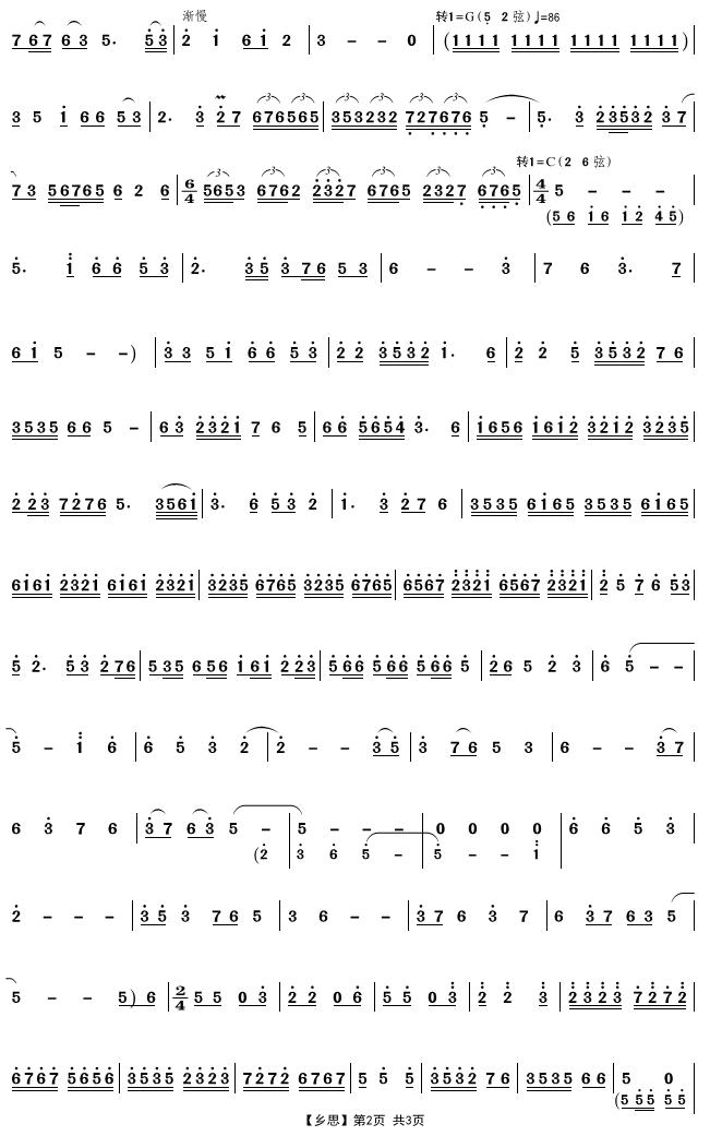 - [二胡谱] 乡思