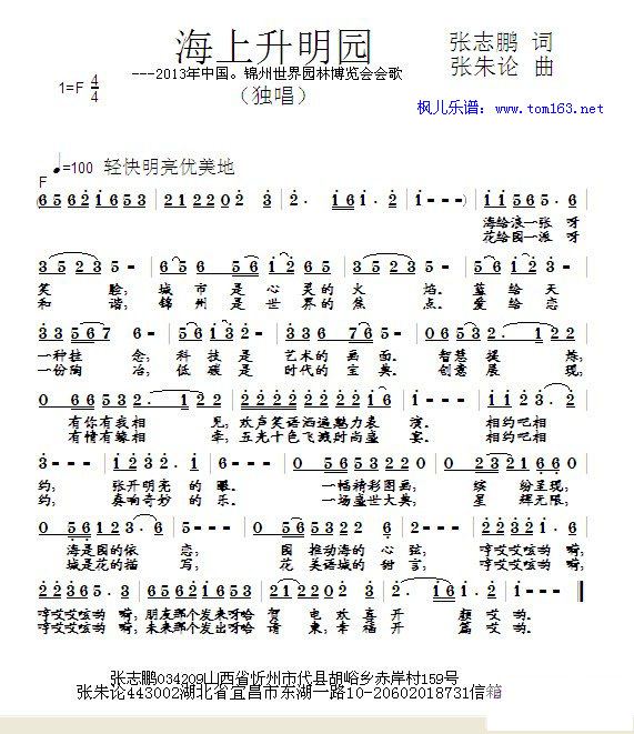 海上升明园 2013年中国锦州世界园林博览会会歌