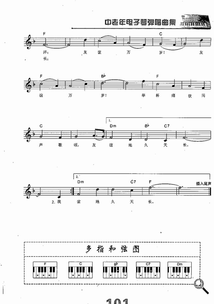 > 电子琴 友谊地久天长